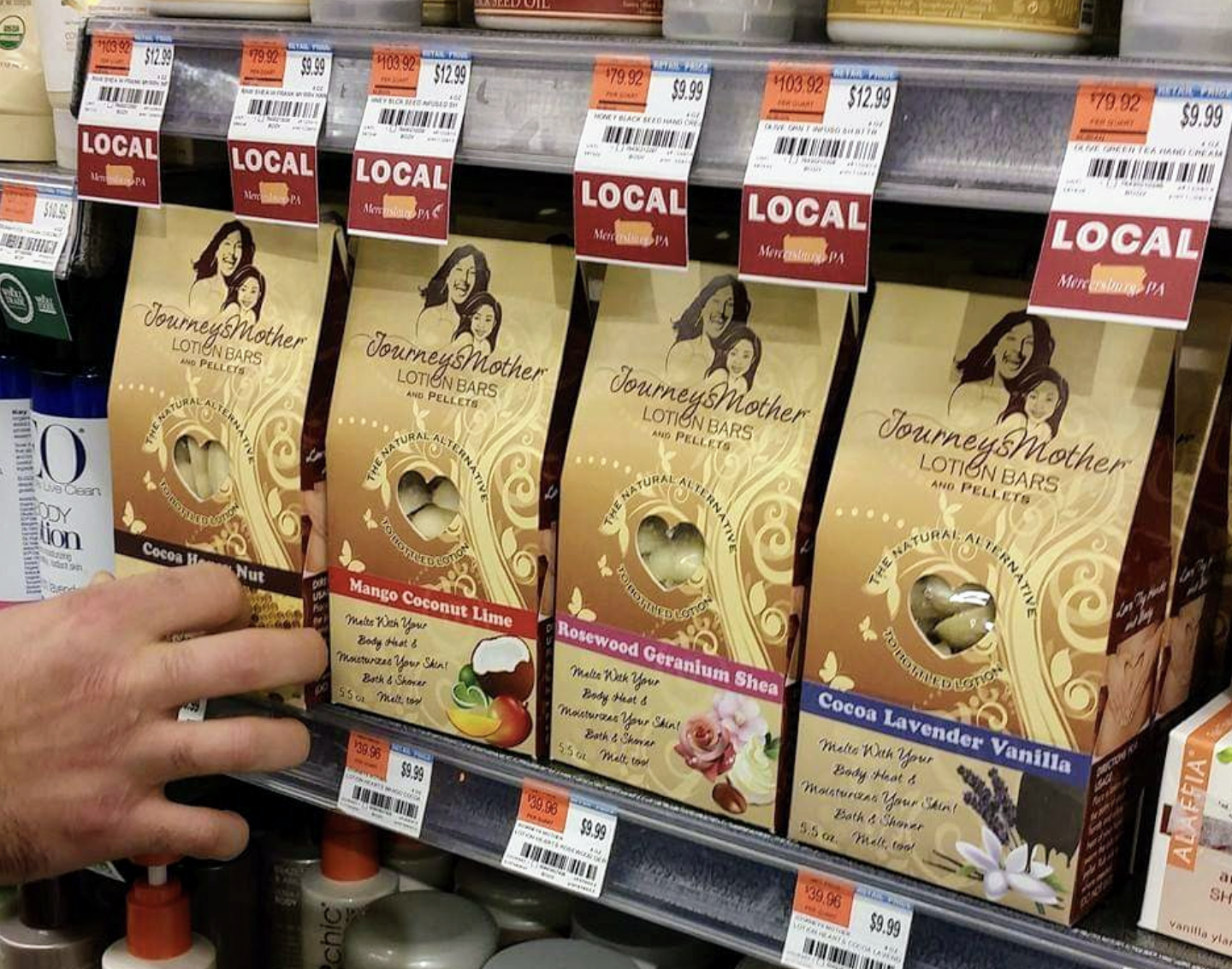 Our best selling product - (voted Cosmopolitan's 2012 Top Earth-Friendly Beauty Find) is our lotion heart pellets! Our most unique solid body moisturizers are small but packed with a super punch of emollient rich hydrating organic cocoa butter, shea butter, and hand-filtered local beeswax. Each pellet goes a long way. Simply warm it in your hands and allow it to melt against the heat of your body. Rub in all of its goodness. It can be used with hot water while in the shower too! Pat dry afterwards to reveal perfectly softened and non-greasy skin.